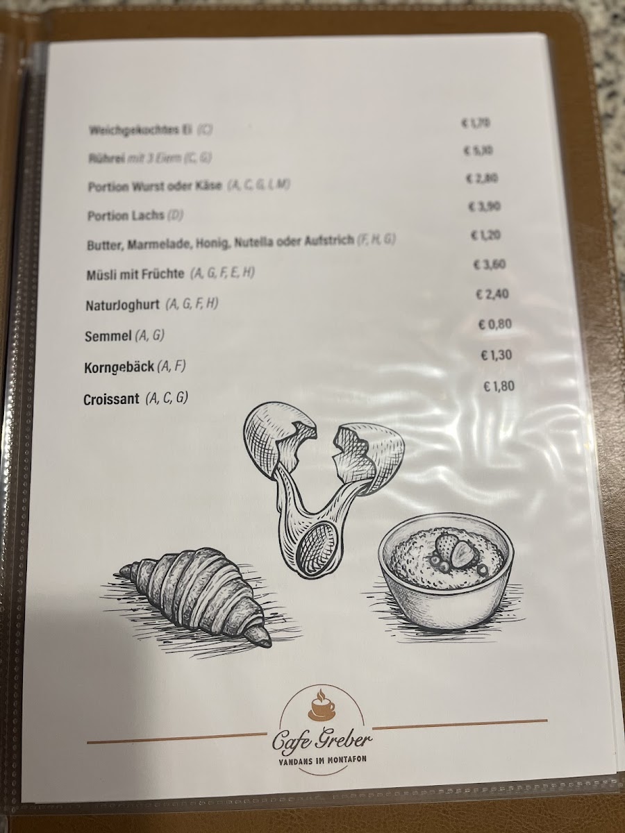 Bakery Cafe Greber Menu